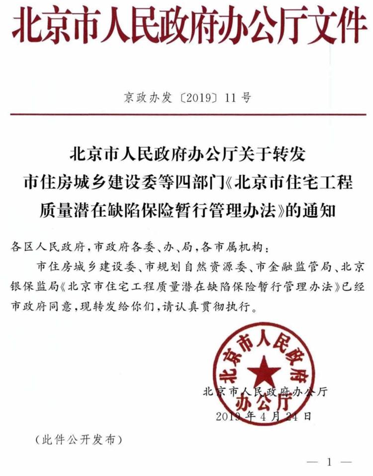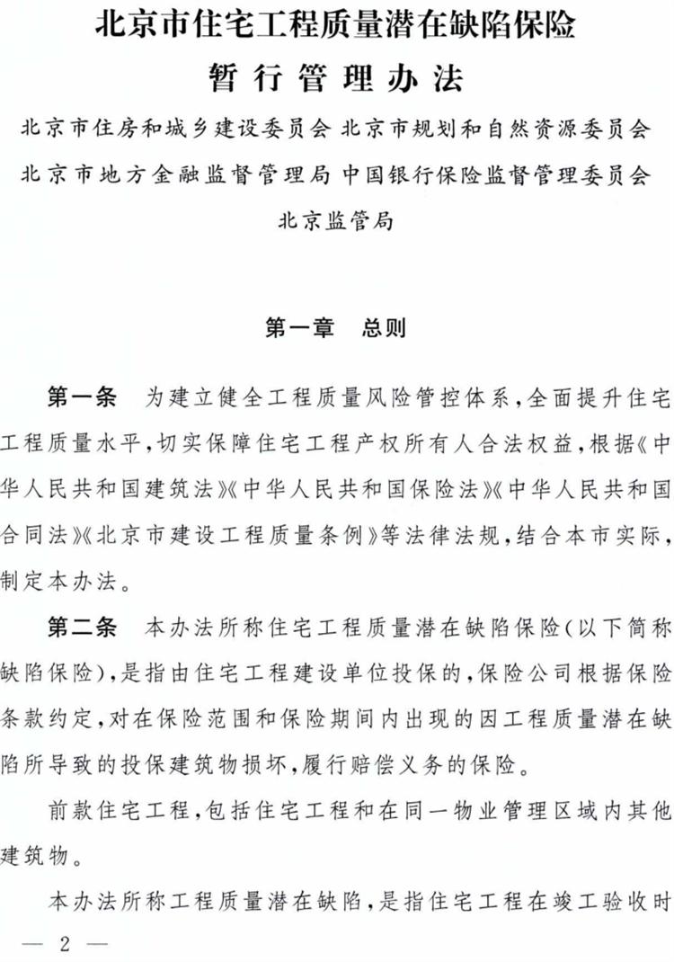 《北京市住宅工程質量潛在缺陷保險暫行管理辦法》